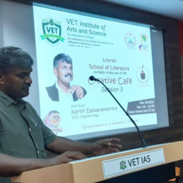 In session 8, Mr. Karthi Easwaramoorthy took an initiative to analyze the students’ capability towards content writing. He asked every student to write about themselves in a creative way and every student submitted their writing at the end of the session. Two real life inspirational stories were shared by Mr. Karthi Easwaramoorthy, which he heard when he was on a business trip to Rajasthan.