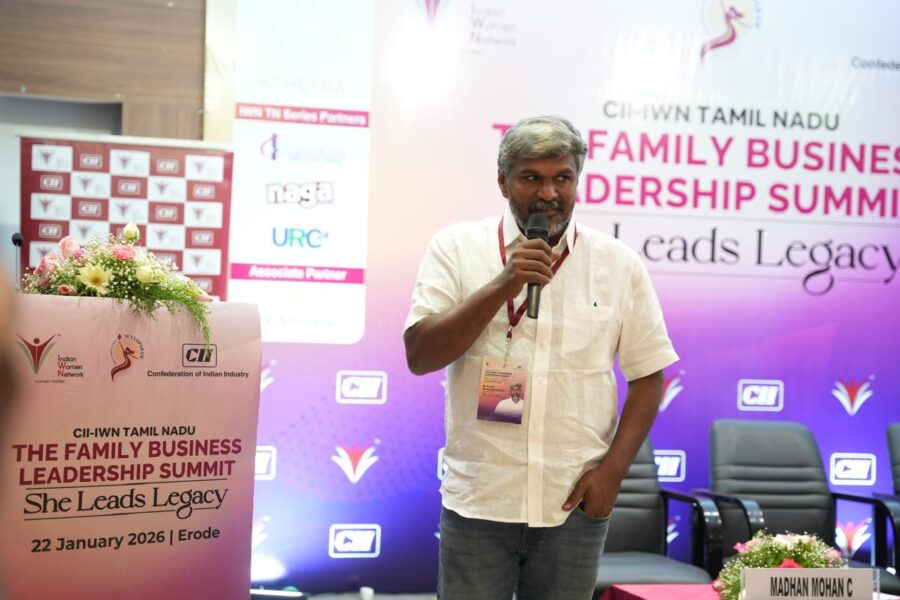 Our CEO, Mr. Karthi Easwaramoorthi, participated as a speaker at the CII–IWN Tamil Nadu Family Business Leadership Summit – “She Leads Legacy”, held in Erode.